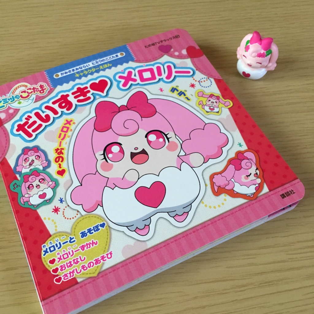いただいたのはこちら、ヒミツのここたまの絵本です。ヒミツのここたまは、最近娘がお気に入りのアニメで、特にこのメロリーちゃんが大好きなんです。メロリーちゃんがたくさん登場するこの絵本は、娘が大喜びで何度も何度も眺めています。ここたまのお人形は食玩で少しずつ集めているところ。ヒミツのここたまについては、また改めて書きたいと思います。
